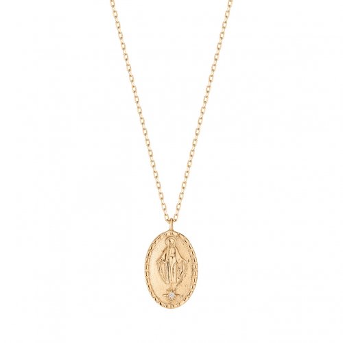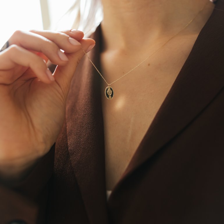 10K Yellow Gold Diamond Oval Jesus Necklace