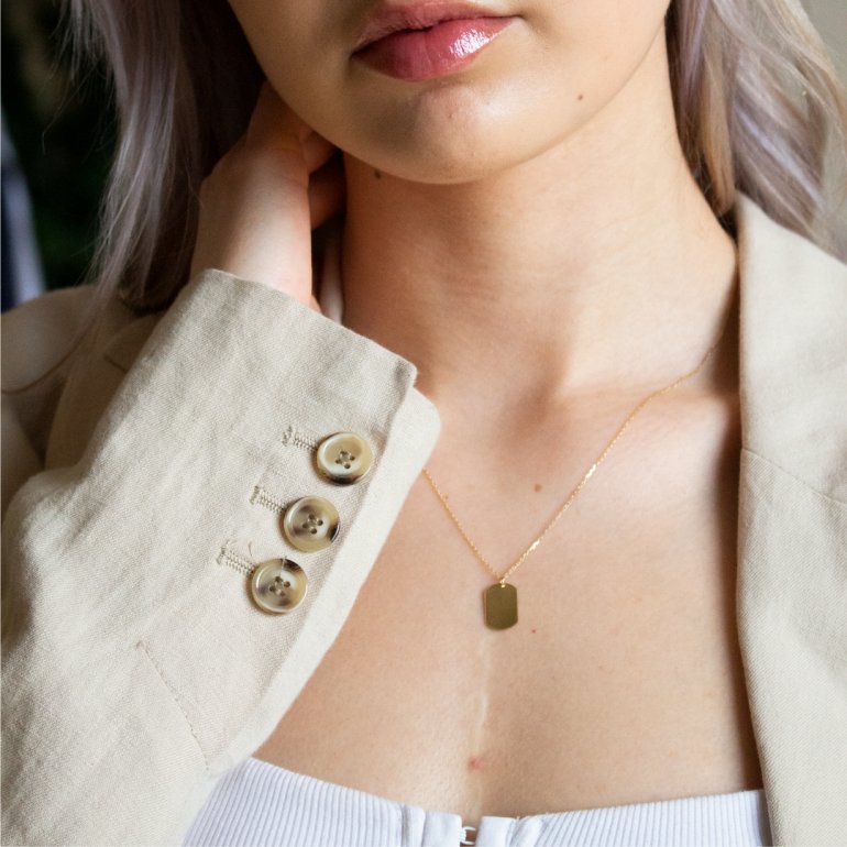10K Yellow Gold Evil Eye Mother of Pearl Rectangle Necklace