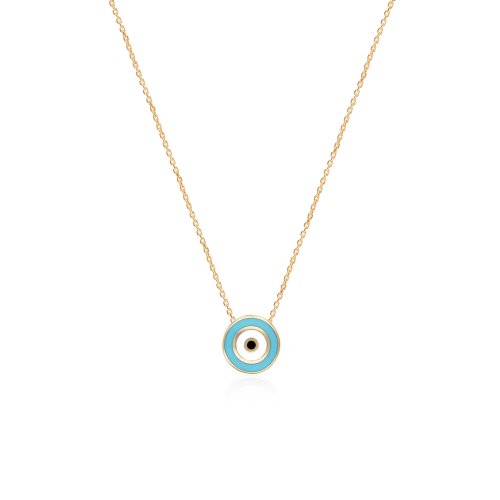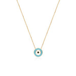 10k Yellow Gold Turquoise Enamel Evil Eye Necklace
