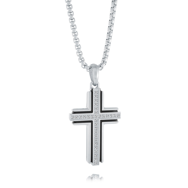 Sterling Silver Curved T-Bar with CZ Tiffany Inspired Necklace