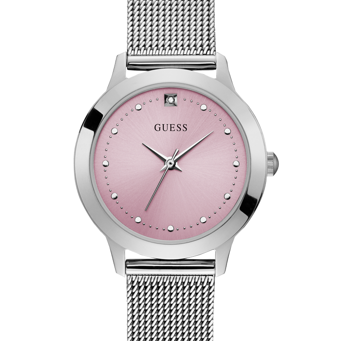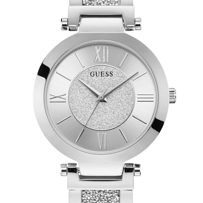 Guess Headline Silicone Strap Silver Tone Men's Watch