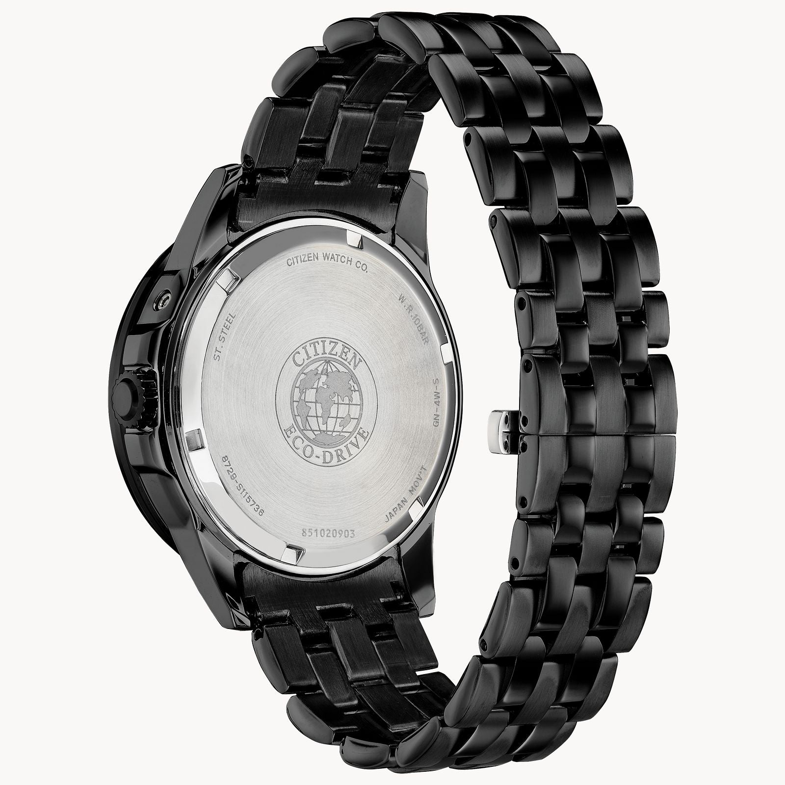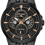 Bring sophistication to your day with the new CITIZEN Calendrier Moonphase, powered by any light with Eco-Drive. This timeless watch features analog month/day/date. Men's watch featured with black ion plated stainless steel case and bracelet with black dial. Featuring our Eco-Drive technology C powered by light, any light. Never needs a battery.