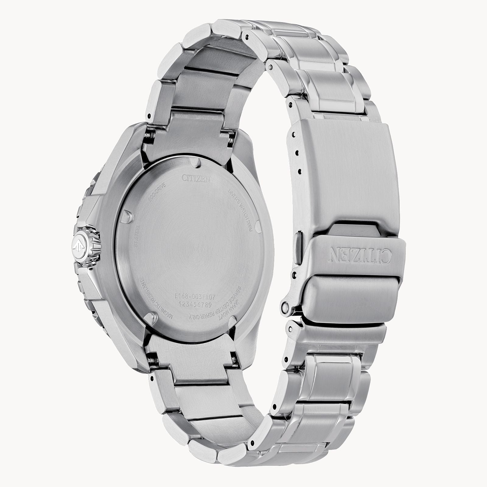 Proof that a dive watch can be fun & functional with the CITIZEN ISO-compliant Promaster Diver. With Eco-Drive technology, it is powered by light and never needs a battery, so you'll never need to open your caseback or compromise your dive again. Featured in stainless steel with green aluminum bezel and matching green dial, one-way rotating elapsed time and water resistant to 200 metres. Calibre E168.