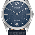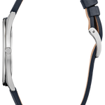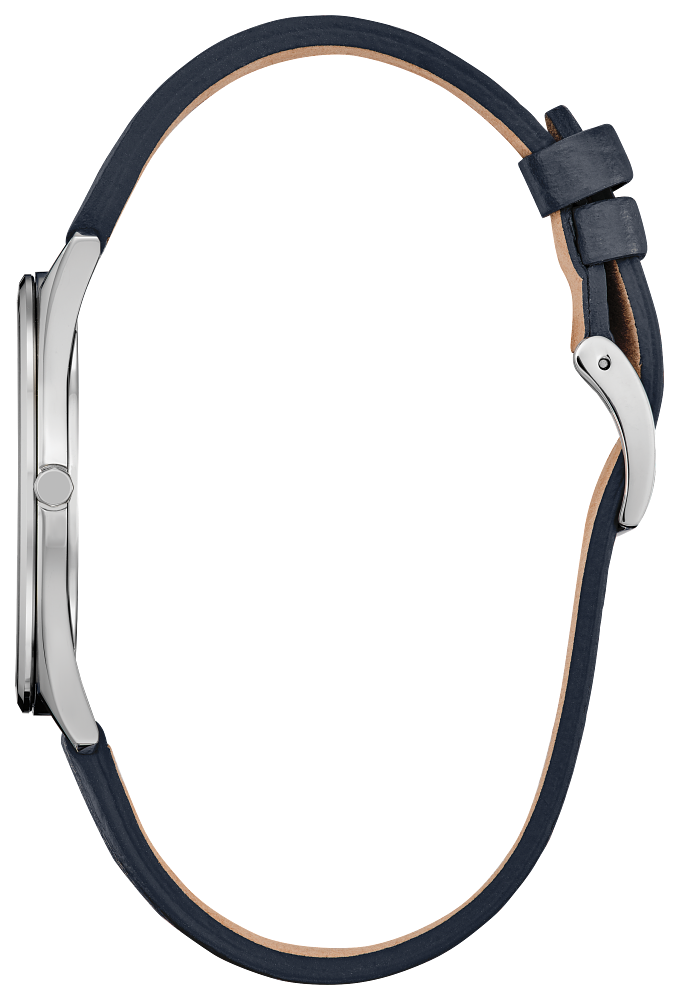 Classic lines and a simple silhouette define the newest addition to the Classic collection. This all-purpose dress watch features a versatile silver-tone stainless steel 38.4mm case, a two-hand blue dial featuring an entrancing metallic powder aesthetic with silver-tone hands and markers, and is secured to the wrist via a grained blue leather strap with buckle closure. Sustainably powered by any light with Eco-Drive technology and never needs a battery. Water resistant to 50 metres. Calibre G872.