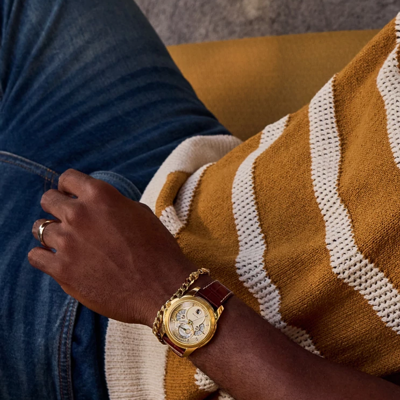 Calendrier Gold-Tone Leather Strap BU0082-06P