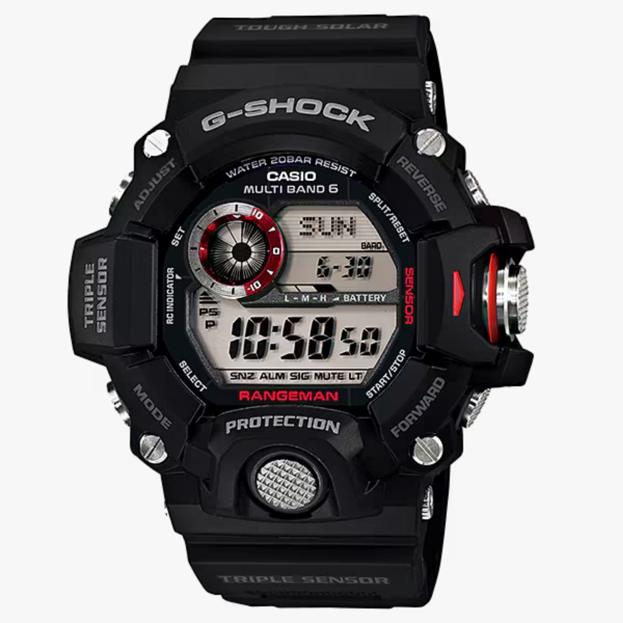 Introducing RANGEMAN, the latest addition to the Master of G series of tough and rugged timepieces that are designed and engineered to stand up to the most grueling conditions imaginable. RANGEMAN is Triple Sensor equipped, which makes it capable of keeping altitude, barometric pressure, temperature, and direction readings at your fingertips.