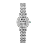 This 28mm stainless steel watch with a two-hand movement showcases a green sunray dial with petite crystal indexes and a stainless steel bracelet.