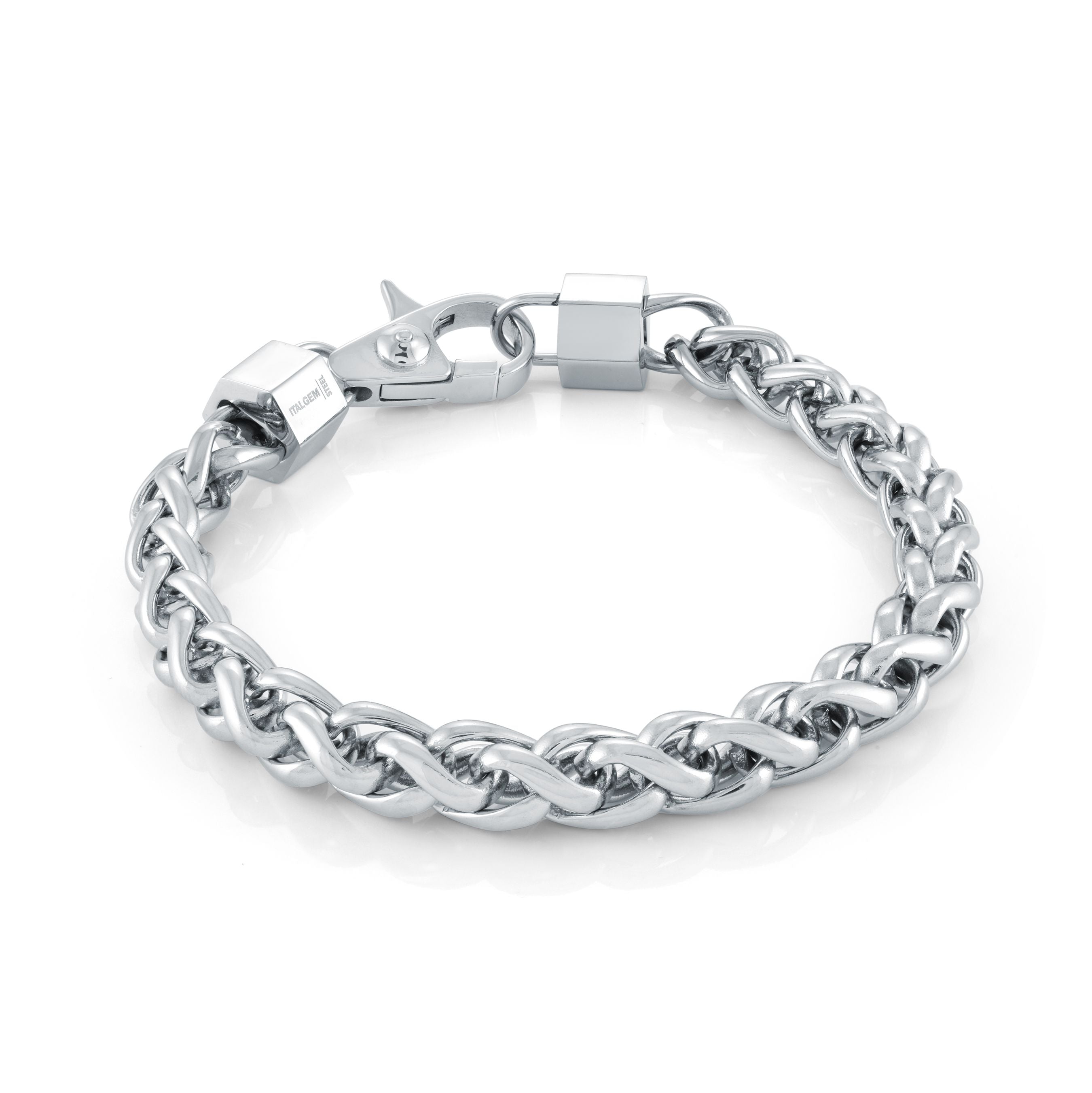 Crafted from durable stainless steel with an ion-plated finish, this bracelet is built to last and withstand daily wear. The wheat chain design adds a touch of sophistication to your wrist.
