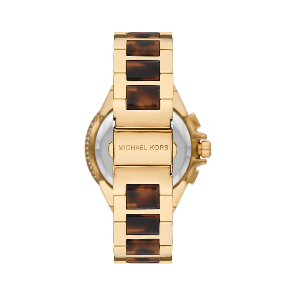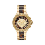 From the Camille Collection. The iconic Camille watch makes a comeback in this 43mm oversized style. Featuring a pav topring, and tortoise acetate on the outer portion of the dial and the centre links of the bracelet, this goldtone stainless steel watch is a perfect statement piece for everyday wear.