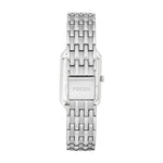 This 23mm Raquel watch features a silver satin dial, three-hand date movement and stainless steel bracelet.