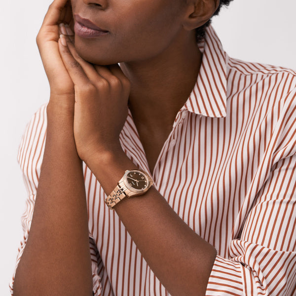 Scarlette Three-Hand Date Rose Gold-Tone Stainless Steel Watch