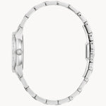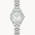 This beautiful addition to the Bulova Ladies Sutton collection offers a sophisticated timepiece for every occasion. The slender silver-tone stainless steel case is set with 16 dazzling diamonds and features a domed sapphire crystal for exceptional clarity. The lustrous genuine mother-of-pearl dial is accented with 3 diamonds and silver-tone hands and hour markers. Completing the timepiece is a matching silver-tone bracelet with a push-button deployant clasp. For the refined woman, the Bulova Ladies Sutton provides a timepiece that doesn t compromise. Calibre: 2035