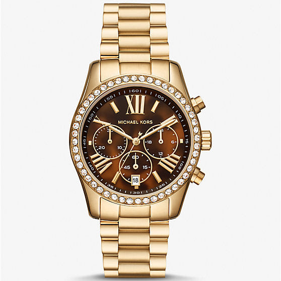 Lennox Pave Silver-Tone Curb-Link Watch MK7488