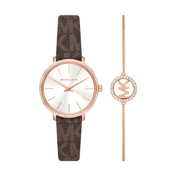 Raquel Three-Hand Date Medium Brown Leather Watch and Bracelet Set