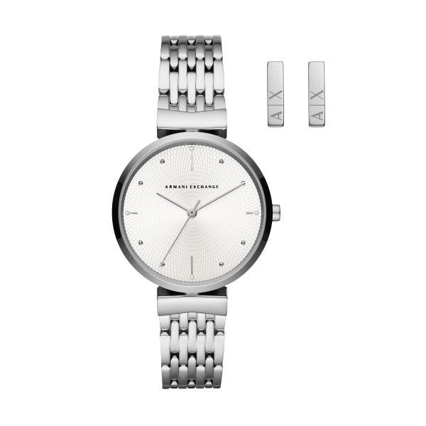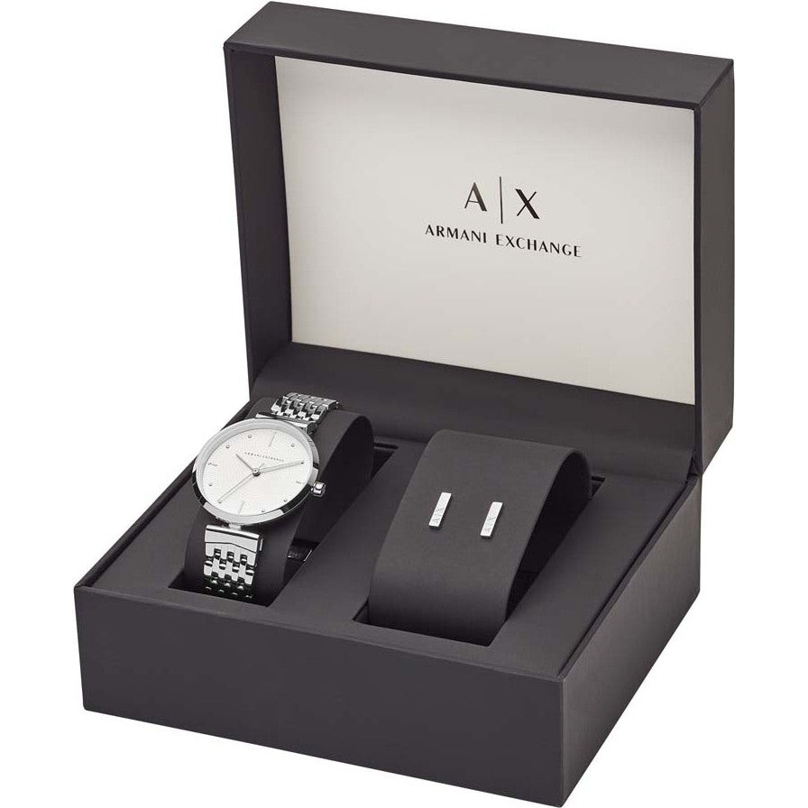 Armani Exchange Three-Hand Rose Gold-Tone Stainless Steel Watch and Bracelet Set