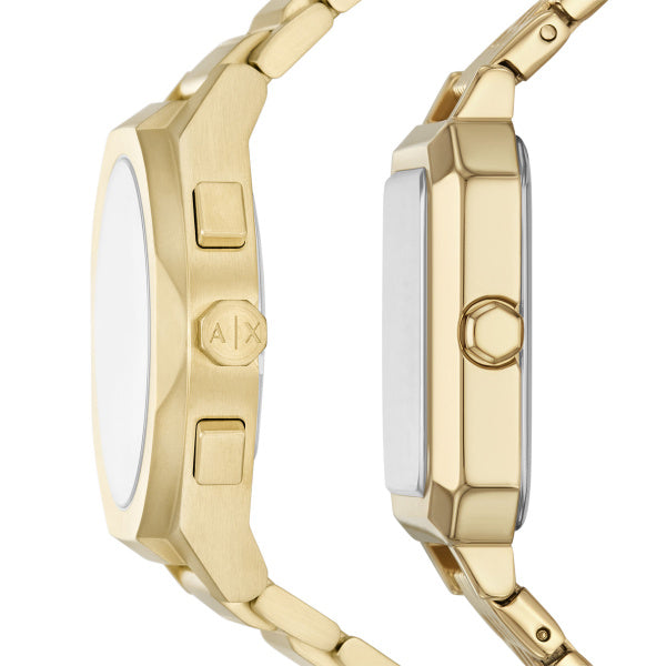 A|X Men's & Women's Sync Chronograph Gold-Tone Stainless Steel Watch Pair Gift