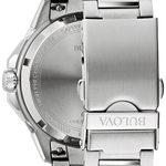 An incredibly bold design, this men s Bulova Marine Star Precisionist sport watch pushes the limits with Bulova s cutting edge technology and a strikingly modern case. Defined by a rugged, angular profile, the 43mm "inless steel case features brushed facets and polished accents, with a unidirectional timing bezel with a ceramic insert, a sapphire crystal, and a screw-down crown ensuring 200m water resistance. The bright white dial takes its inspiration from the undulating crests of the ocean, with a wave pattern accented by applied hour markers and a bold handset, all featuring luminescent material for unrivaled legibility in all conditions. A date window is position at 3 o clock, while the red-tipped seconds hand brings a subtle pop of colour and sweeps smoothly around the dial thanks to Bulova s proprietary Precisionist movement, a revolutionary 8-jewel quartz mechanism vibrating at a remarkable 262kHz and accurate to 10 seconds per year with increased resistance to temperature changes. With a 3-link, dual-finished stainless steel bracelet featuring a secure foldover clasp, this men s Bulova timepiece is equipped to handle everything from the office to the ocean.