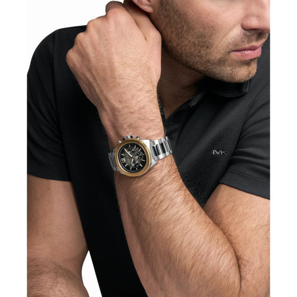 Designed for days on the go, our Sage watch takes a sleek and streamlined approach to timekeeping. The gray dial draws a striking contrast to the stainless-steel hardware, while the date function and chronograph movement complete the dynamic piece. Style #MK9212