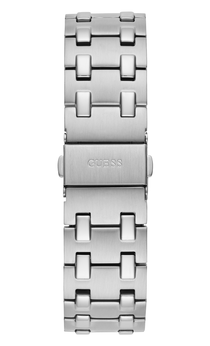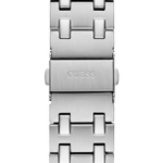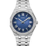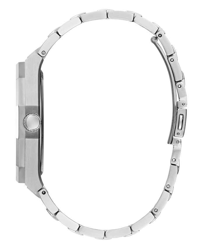 An asset to any man's wardrobe, this stunning octagonal case design with screw details features an upscale dial design with roman numerals and a brushed and polished bracelet.