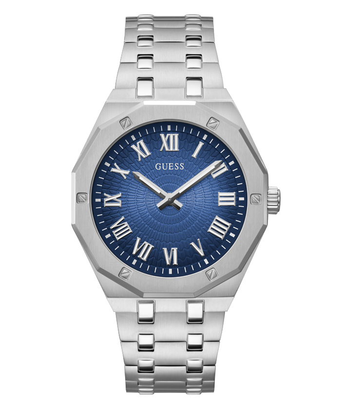Asset Silver-Tone and Blue Octagonal Analog Watch