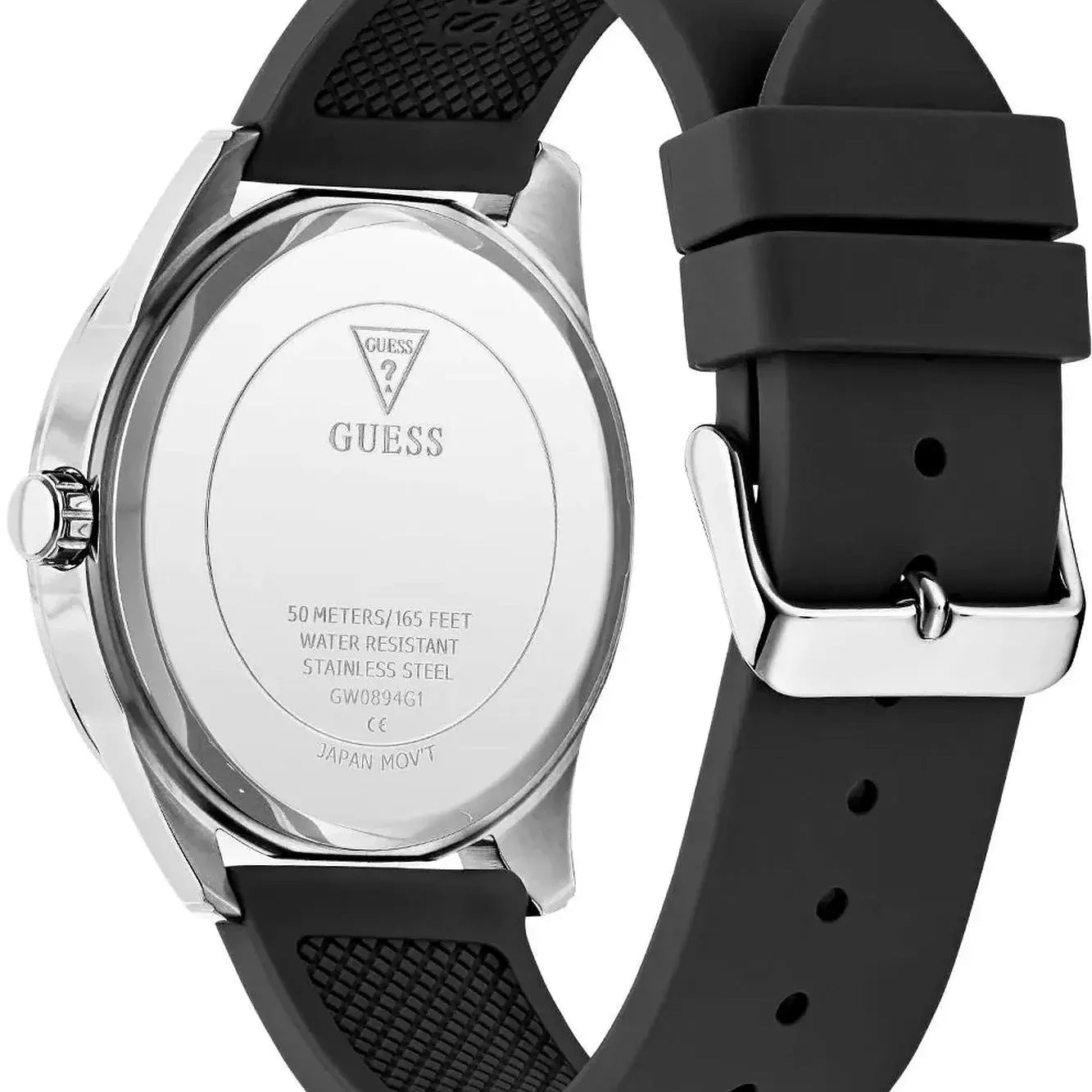 Silver Tone and Black Silicone Analog Watch GW0894G1