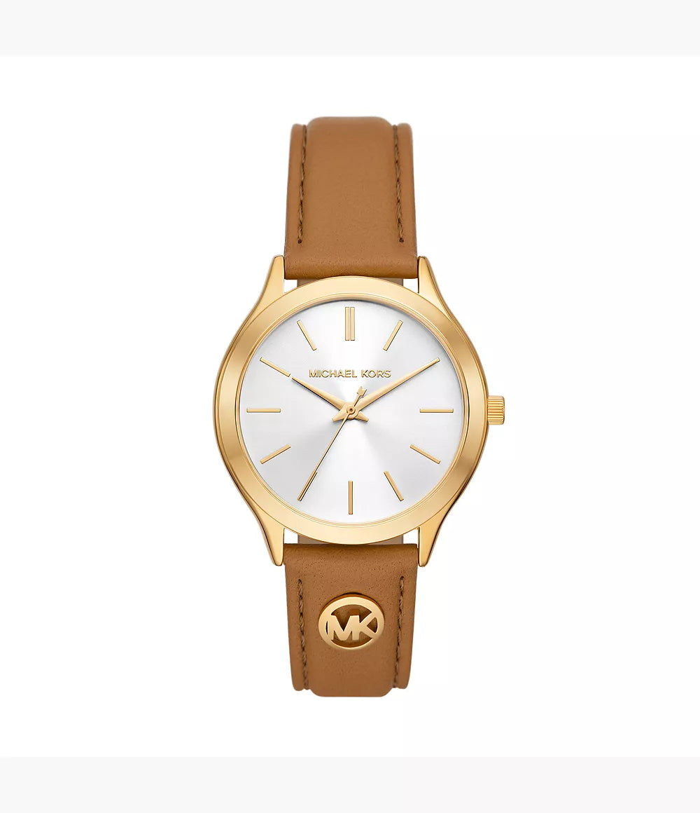 Slim Runway Three-Hand Brown Leather Watch MK7543