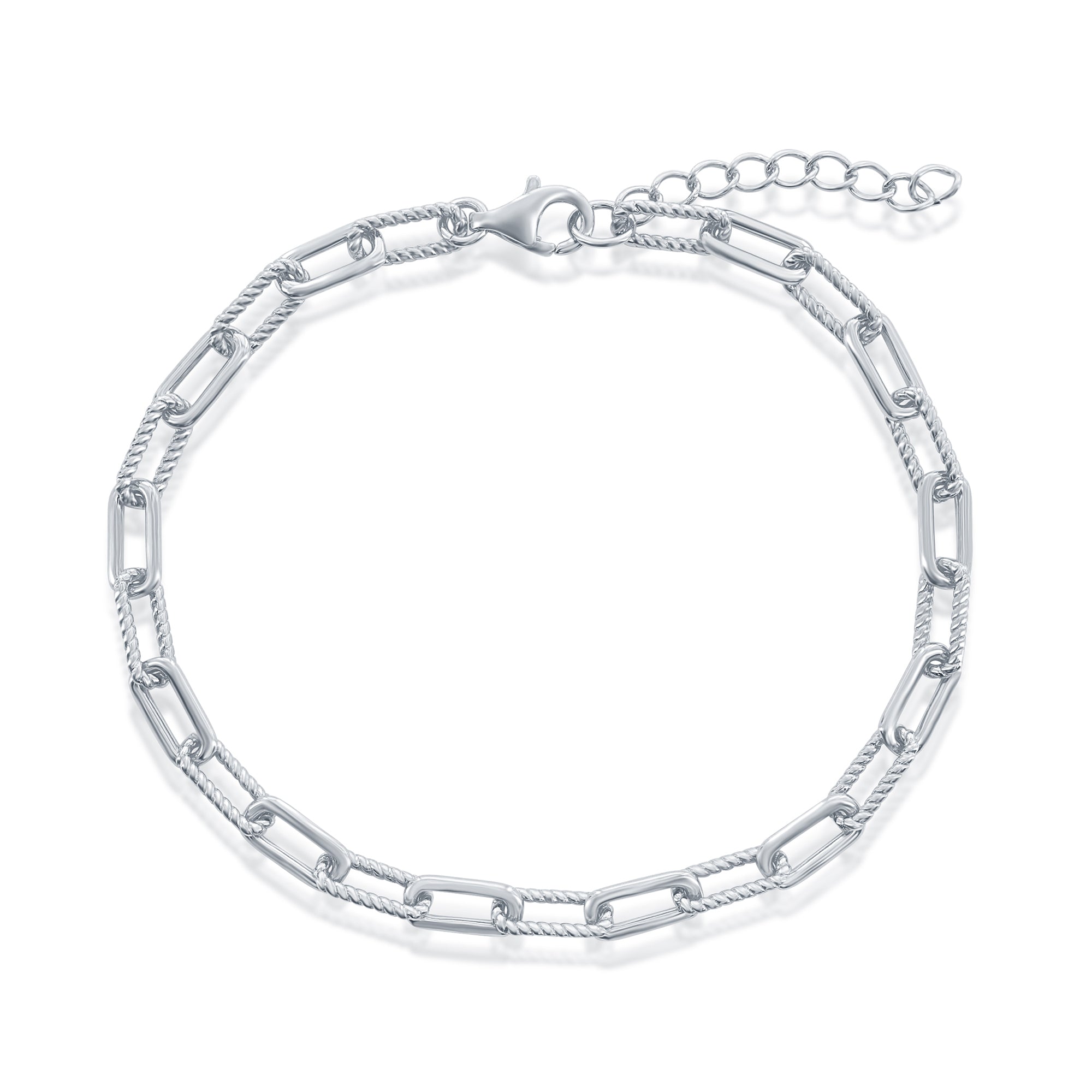 Sterling Silver Polished & Rope Design Paperclip Bracelet