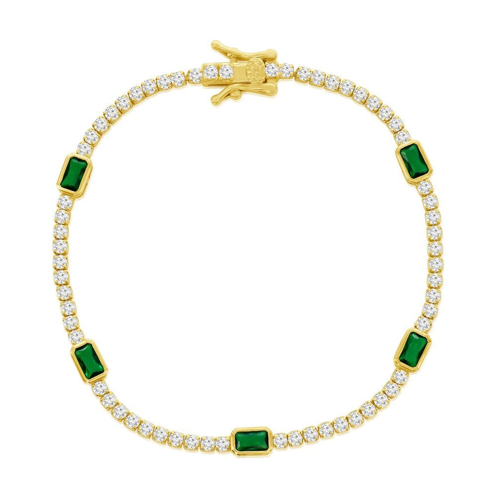 Sterling Silver Rectangle Bezel-Set & Round CZ Bracelet - Emerald Gold Plated