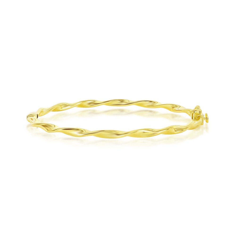 Sterling Silver Overlapping Polished & Rectangle CZ Bangle - Gold Plated