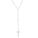 Sterling Silver Freshwater Pearl & Plain Beads by the Yard Cross Rosary Necklace
