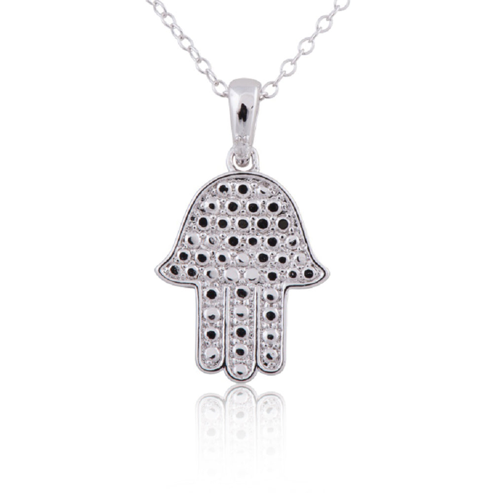 Sterling Silver Rhodium Plated Hamsa with a Diamond Accent Pendant