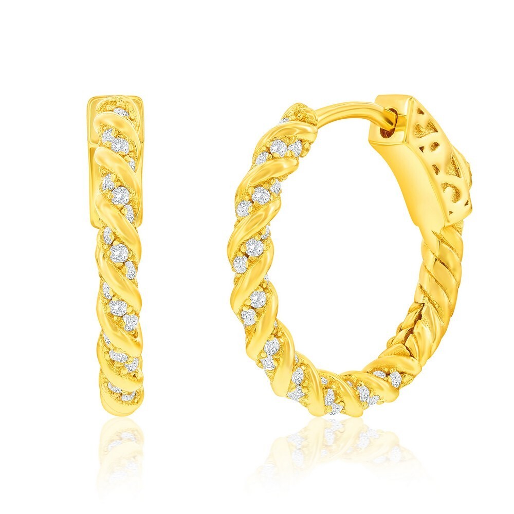 Sterling Silver 19MM Rope Design CZ Hoop Earrings Gold Plated