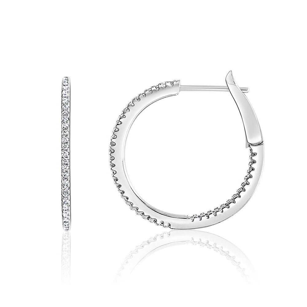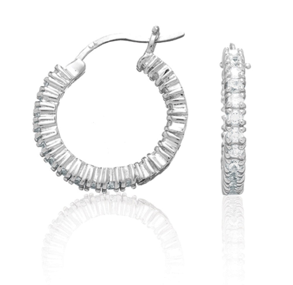 Sterling Silver 20MM CZ IN/OUT Hoop Earring