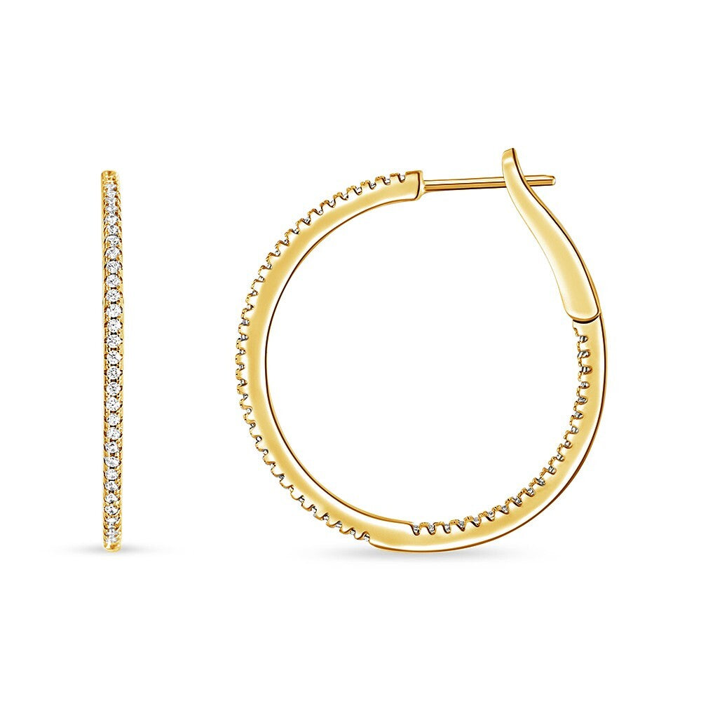 Sterling Silver 20MM CZ IN/OUT Hoop Earring Gold Plated