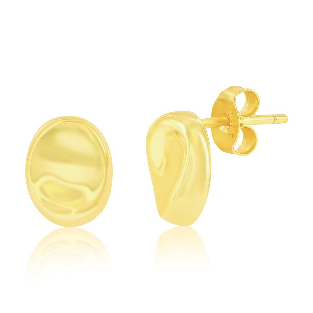 Sterling Silver Polished Puffed Oval Stud Gold Plated