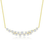 16+2" Sterling Silver Round CZ Curved Bar Necklace