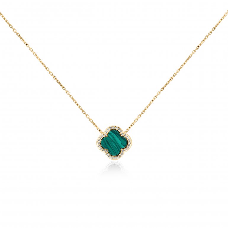 Sterling Silver Gold Vermeil Designer Inspired Green Malachite Van Cleef Necklace