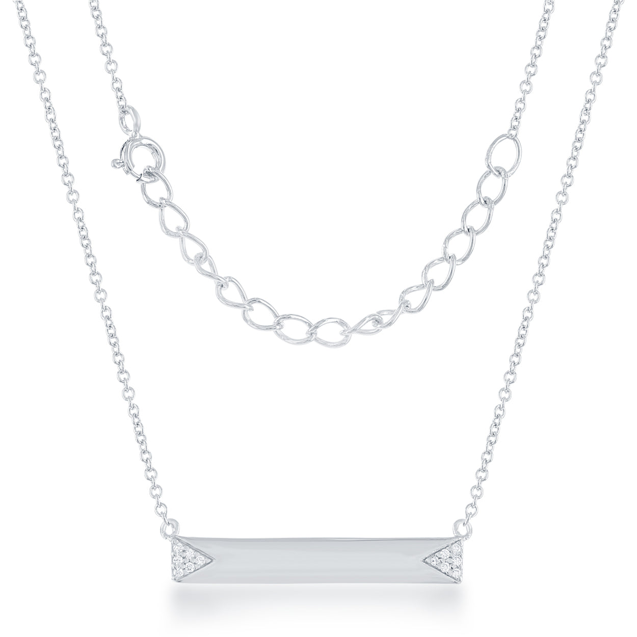Sterling Silver Small Bar with CZ Edges Bar Engravable Necklace