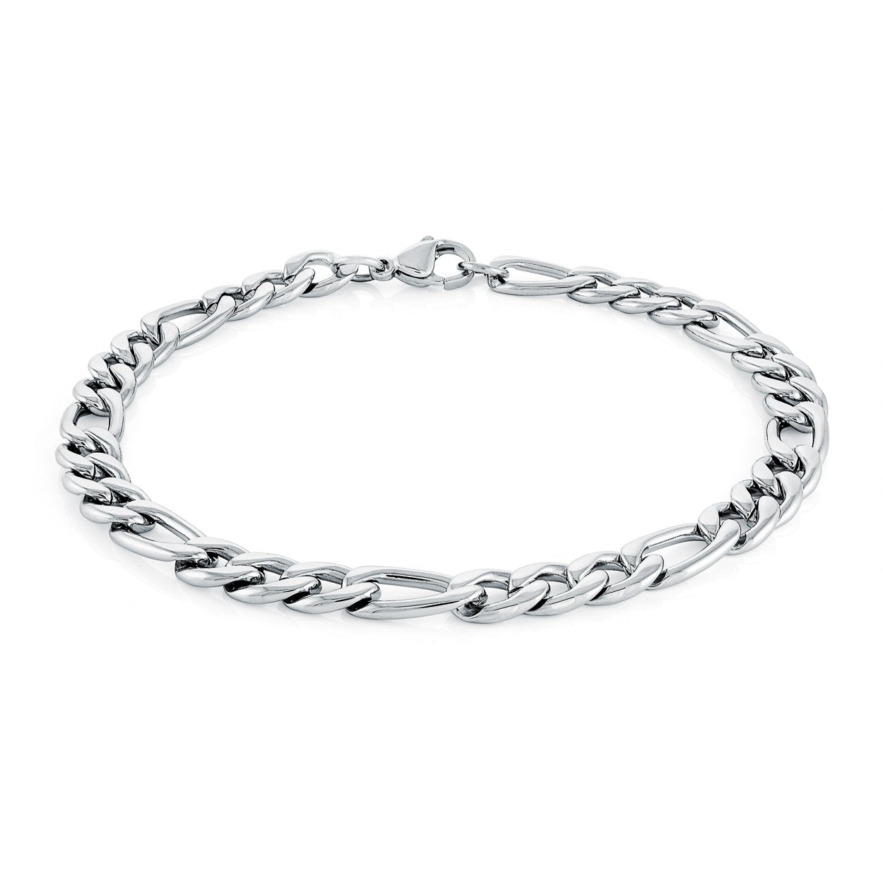 S.STEEL 6MM-FIGARO POLISHED 8.5"-BRACELET