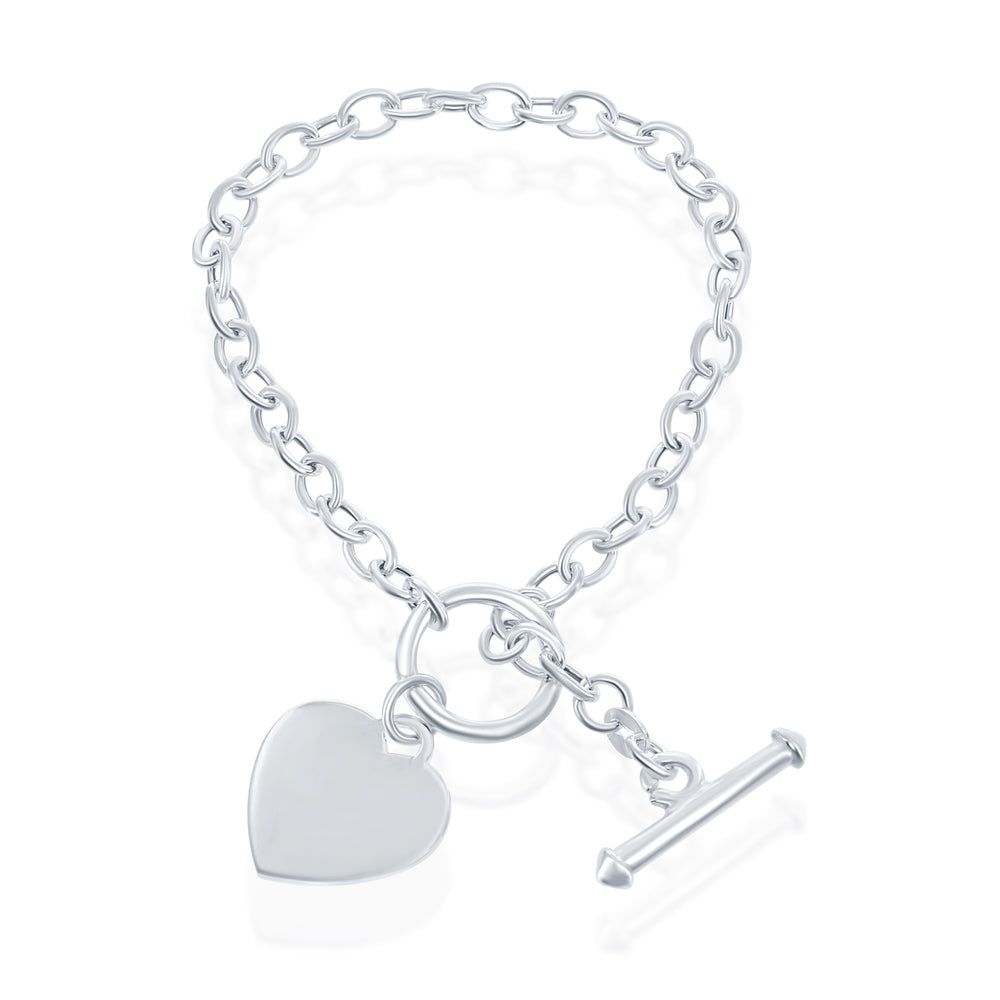 Sterling Silver Engravable Heart Charm Rolo Chain Toggle Bracelet