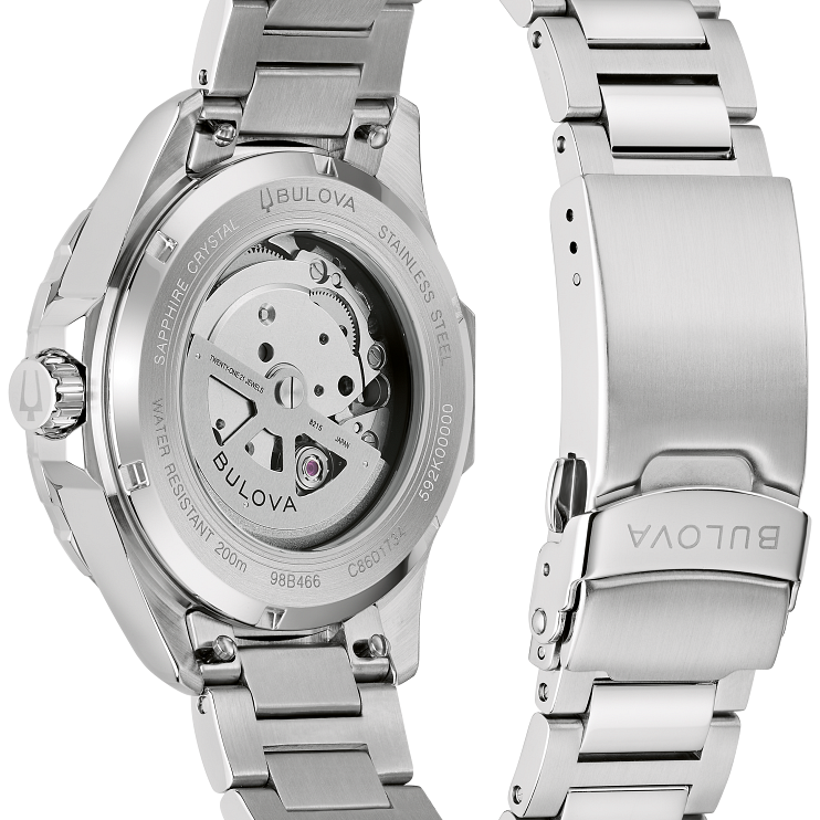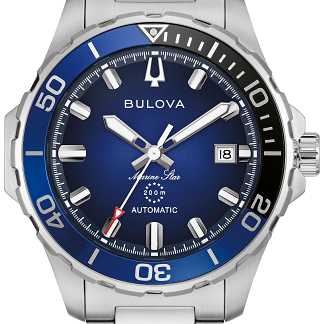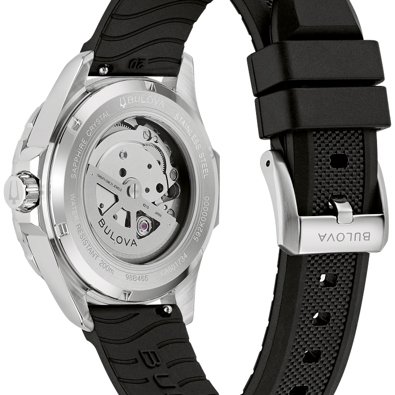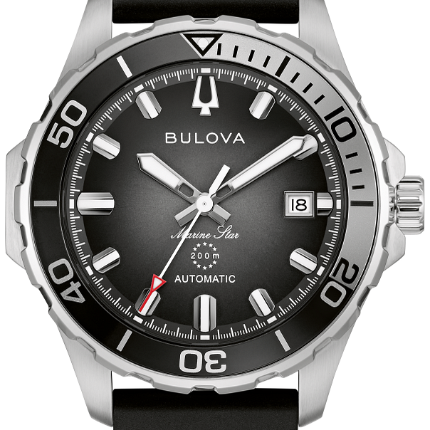 Black Dial Stainless Steel Rubber Marine Star 98B465