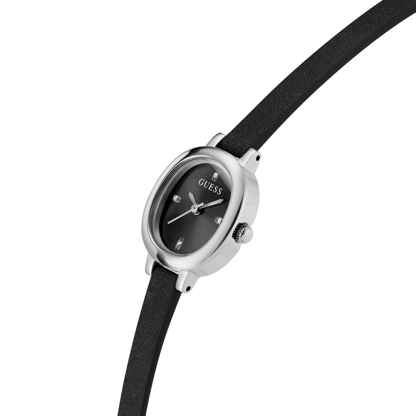Silver-Tone and Black Oval Analog Penelope Watch GW0925L1