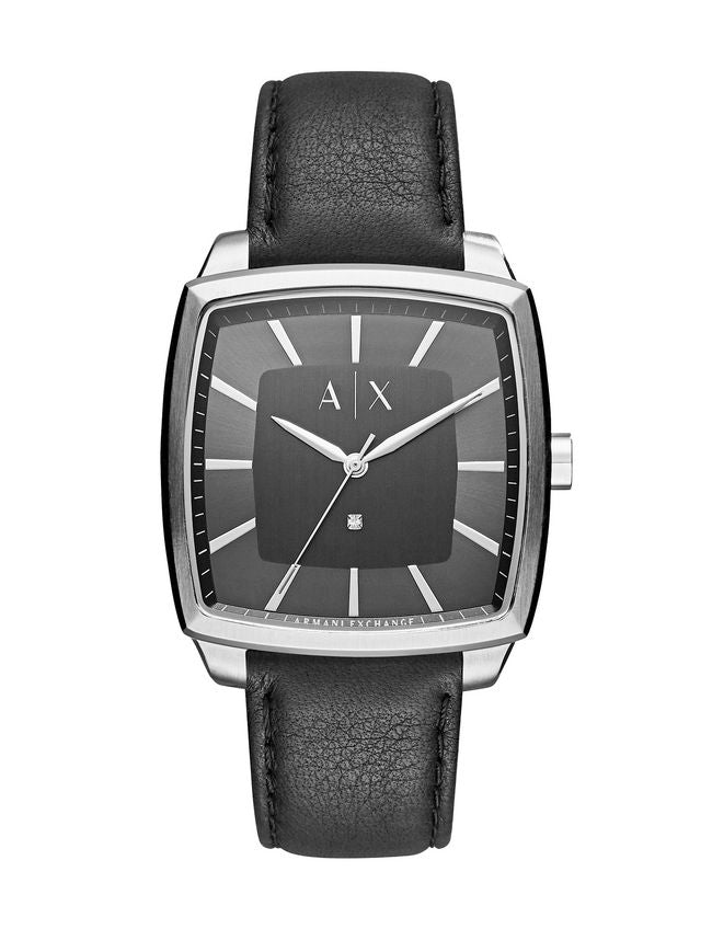 This elegantly understated timepiece featuring a handsome square case is complemented by a leather band and our AX logo in small letters on the face. The perfect accessory to finish off a sophisticated look.
