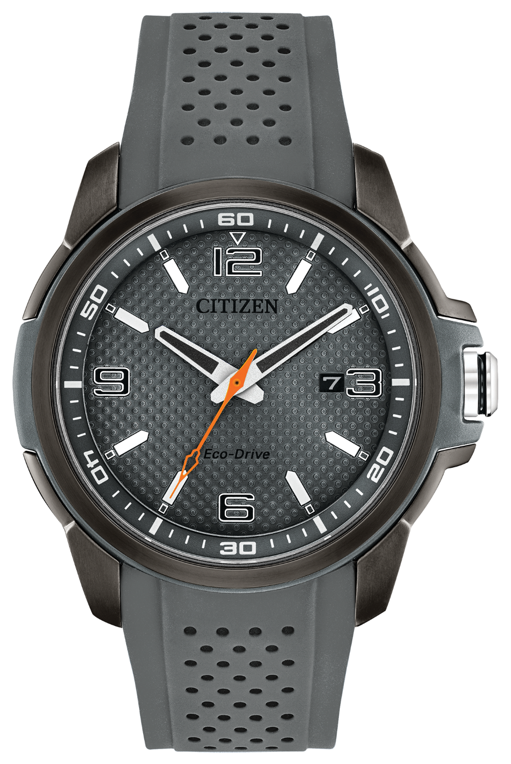Celebrate the best in basketball with the CITIZEN Naismith Commemorative Edition timepiece featuring special edition caseback. Powered by any light with Eco-Drive Technology with men's grey ion-plated stainless steel case, grey polyurethane strap, charcoal grey dial and date. Featuring our Eco-Drive technology C powered by light, any light. Never needs a battery. Caliber number J810.