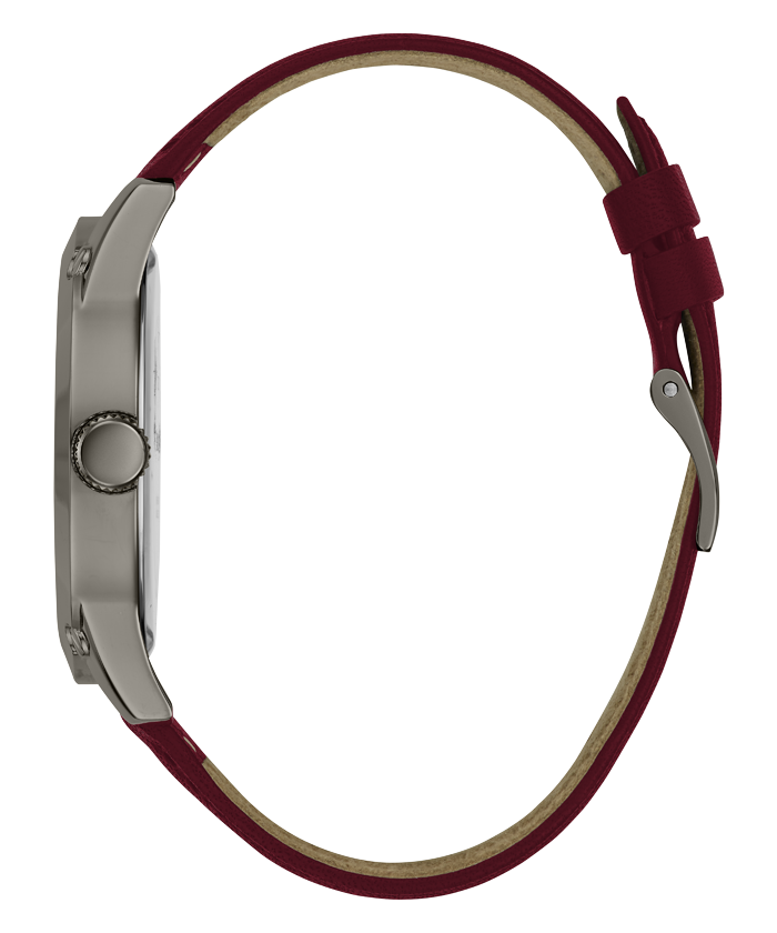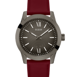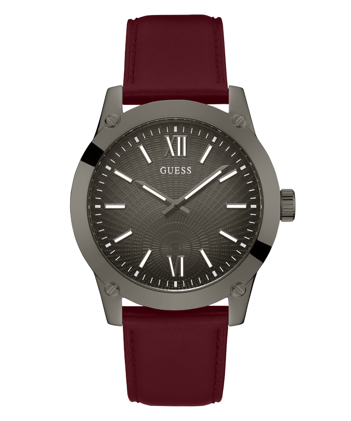 Dark Silver-Tone and Burgundy Leather Analog Watch GW0628G4
