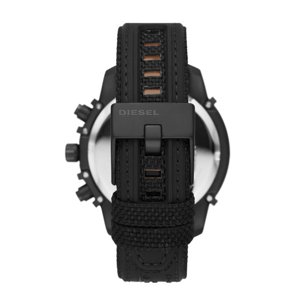 This 48mm Griffed features a black matte dial with stick indices, chronograph movement and black canvas strap.