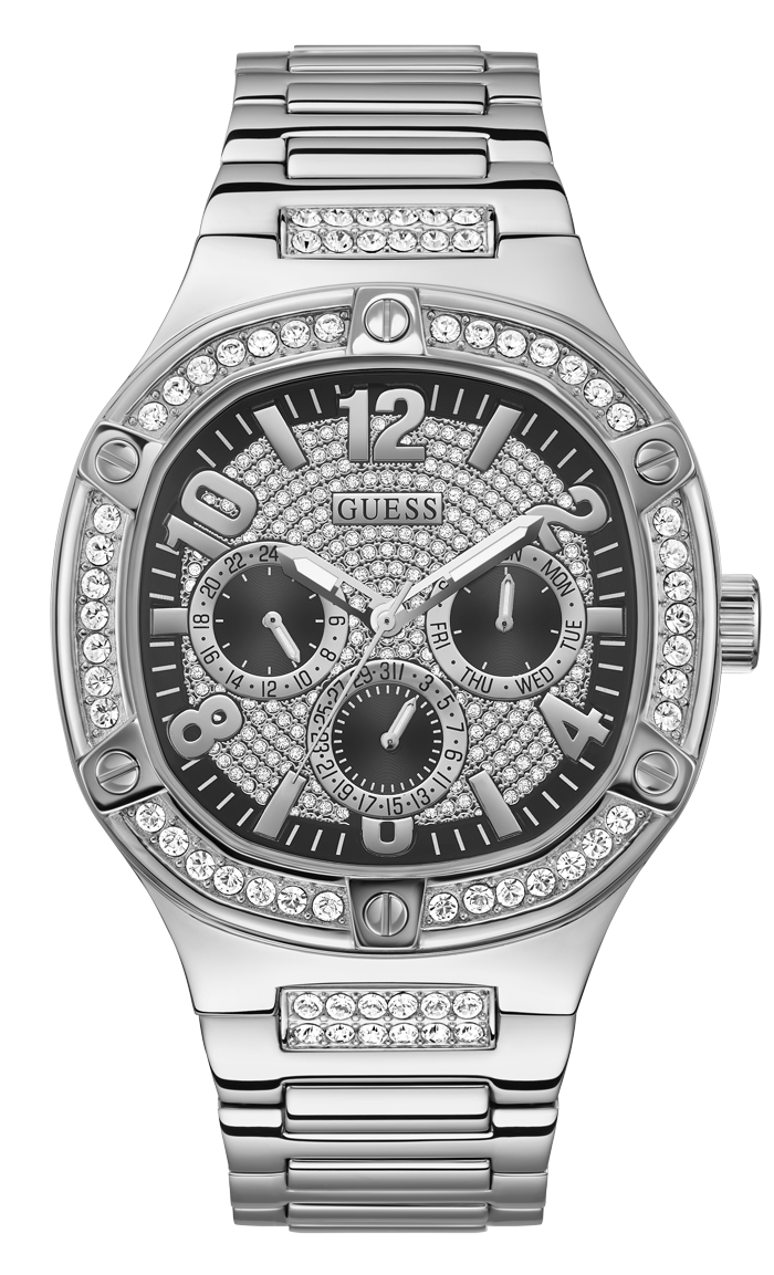 A royal look fit for a Duke, this overstated and overstoned timepiece boasts crystals and screw details and a unique case shape design with additional crystal detailing on the sleek bracelet.