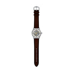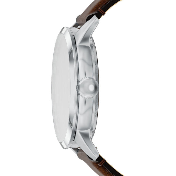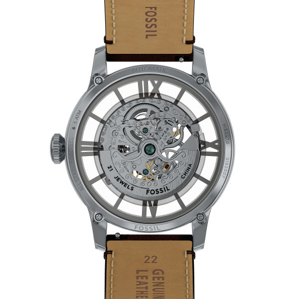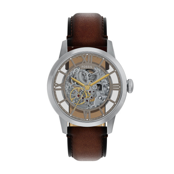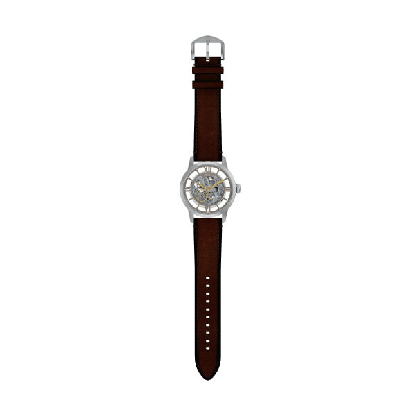The Townsman watch is a modern icon, crafted to showcase the intricate automatic movement. The self-winding mechanism is exposed through a rich grey sunray skeleton dial delivering an uncompromising view of the inner workings. Created for precise timekeeping, it features a supple brown leather strap that offers a sleek and refined look. It's a true standout for effortless, everyday style.
