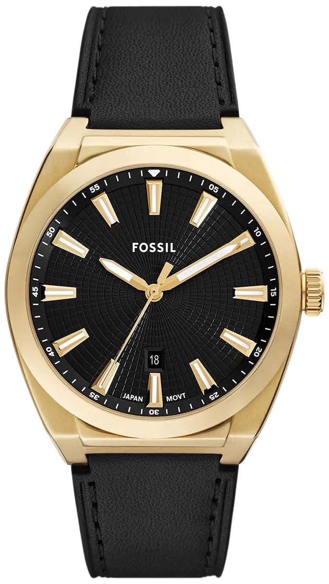 This stylish Everett men's watch with a 42 mm case has a 3-hand movement with date display, a textured dial and a high-quality leather strap.