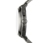 • Round stainless steel case, with a gray dial. Gunmetal, stainless steel bracelet.